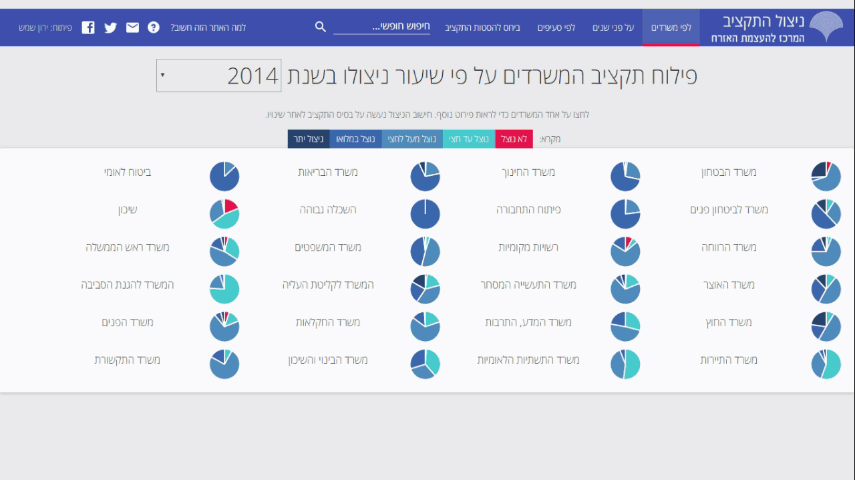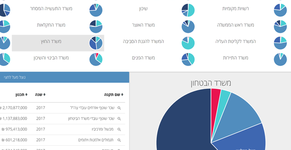 A tool I developed for the Citizens’ Empowerment Center in Israel, which presents the current state of appropriations and spending of the State Budget of the Israeli Government, in an approachable and friendly manner. The tool allows citizens, journalists and policy makers to review which State Budget appropriations have actually been used by the various state agencies, and also allows tracking and analysis of changes to appropriations over time. The data in this tool is extracted from raw databases available on the official Ministry of Finance website.