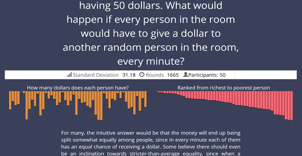 An Interactive simulation that demonstrates a counter-intuitive concept in statistics. The simulation shows how initial conditions that seem fair and equal may lead to an unequal distribution of income.