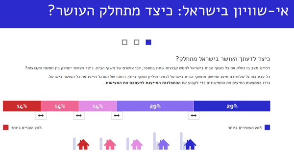 I developed an app for the Institute, which present key results from its Distribution of Wealth report, and allows citizens to position themselves compared to others amongst different indicators of wealth distribution.