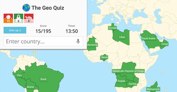 Geography game that challenges you to name all countries. You can play online with friends, and use speech recognition to say out load the countries names instead of typing them. Started with a version of Israeli cities that went viral with over than 20K players.